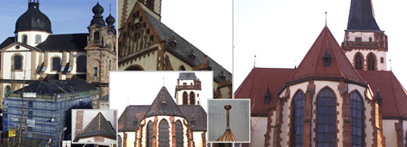 Sanierung des gesamten Kirchenschiffes, einschl. der Seitenbauten mit Biberschwanzziegel in "Gotischer Spitzform". Dachentwässerung und Abdeckungen aus Kupfer.